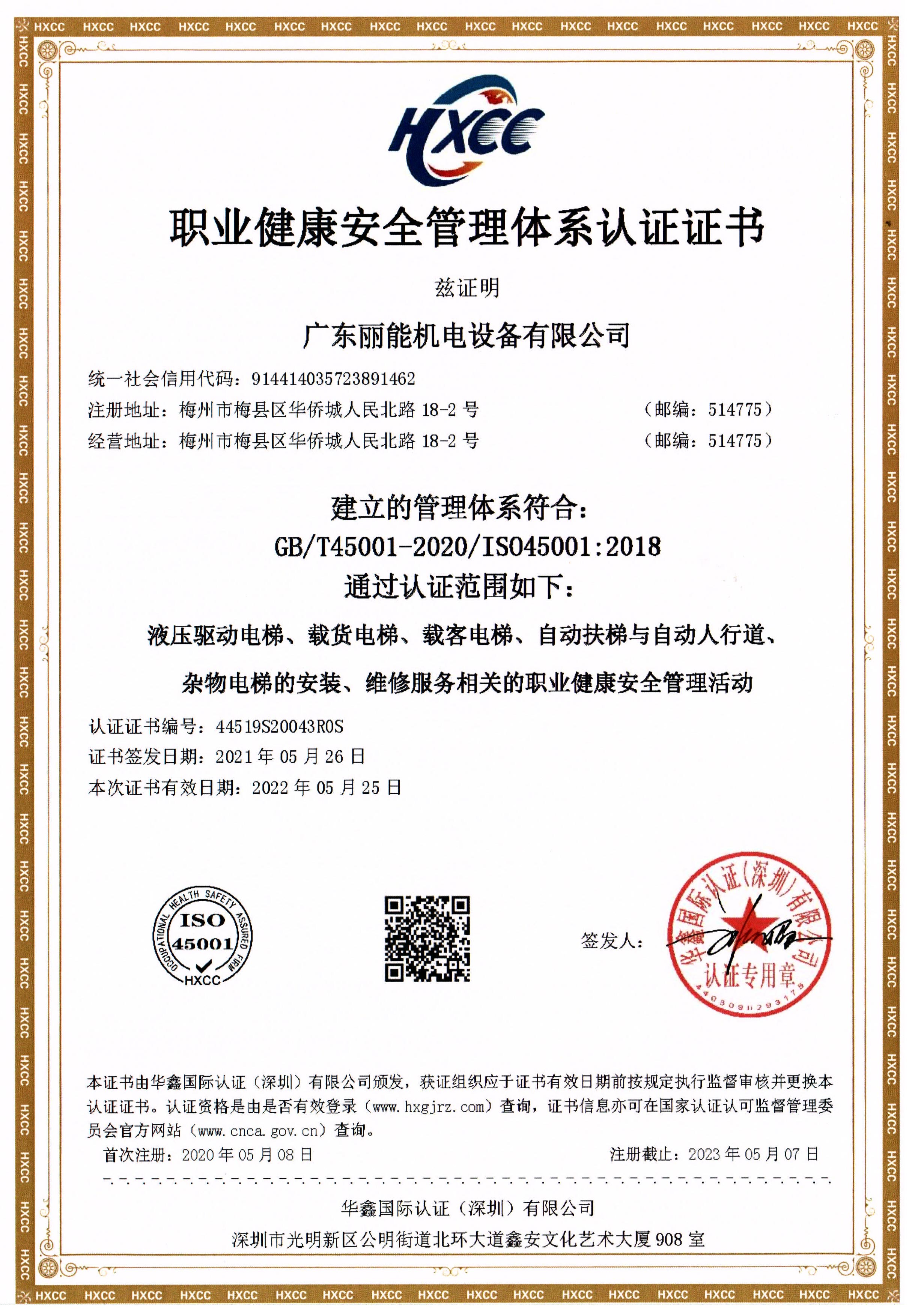 職業(yè)健康安全管理體系認(rèn)證證書(shū)【GB/T45001-2020/ISO45001:2018】